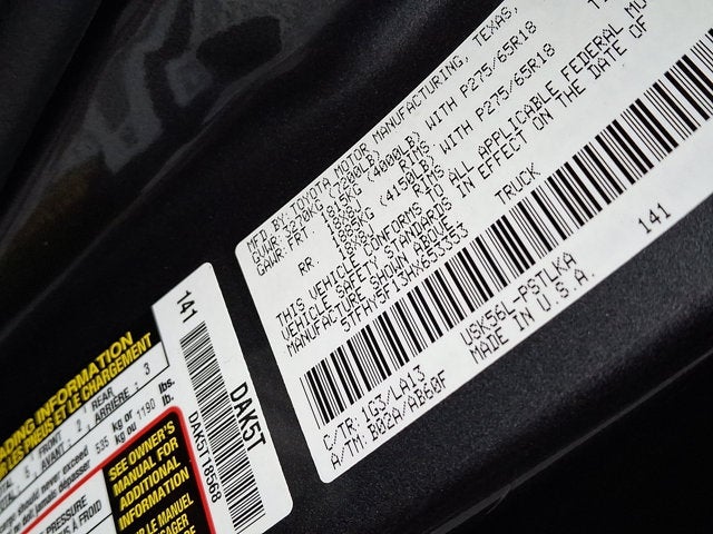 Trip Computer, Transmission: Electronic 6-Speed Automatic w/OD -inc: intelligence (ECT-i), sequential shift mode, uphill/downhill shift logic and TOW/HAUL mode, Transmission w/Driver Selectable Mode, Sequential Shift Control and Oil Cooler, Trailer Wiring Harness, Tires: P275/55R20 AS, Tailgate Rear Cargo Access, Streaming Audio, Steel Spare Wheel, Splash Guards, Solid Axle Rear Suspension w/Leaf Springs.
